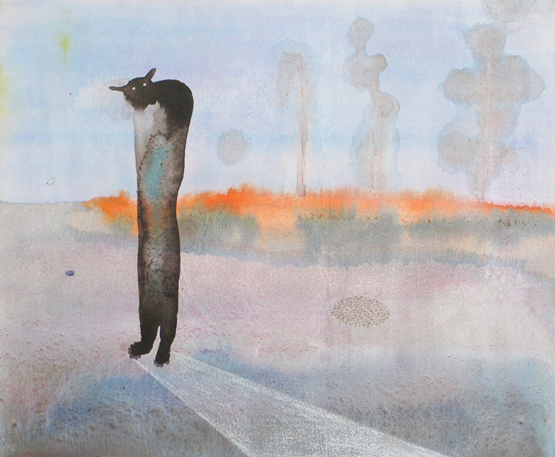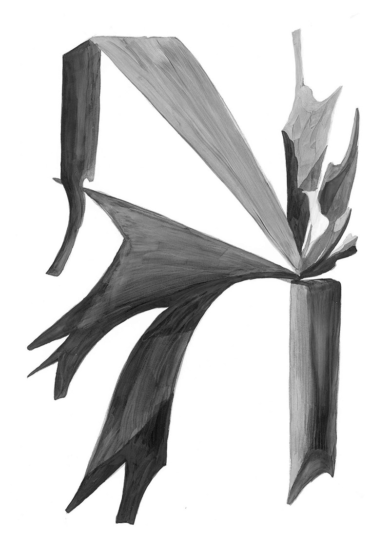 花や植物を描くことに誰もが手を染めるだろうが、この描写は初めて見る花の風景。筆づかいの自由さと黒の分量がもたらすコントラストがモダンでとても心地良い。