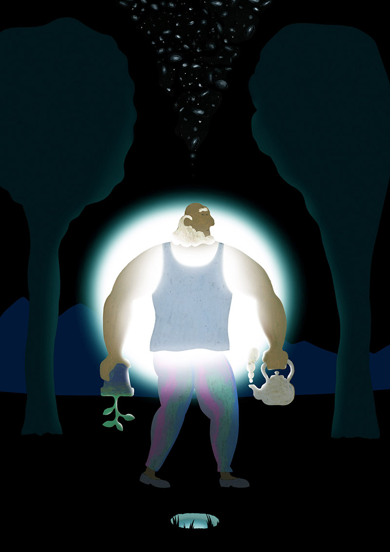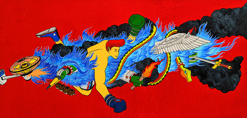 さまざまに出自を持ち、一見無関係な素材や技法がひとつのデジタル空間に包摂され、有機的に整合されている。巧みに操られた光の演出が、そこに奥行きある物語を紡ぎ出している。絵に対して真摯に向き合うことで培われた境地なのだろう、ゆるぎがない。